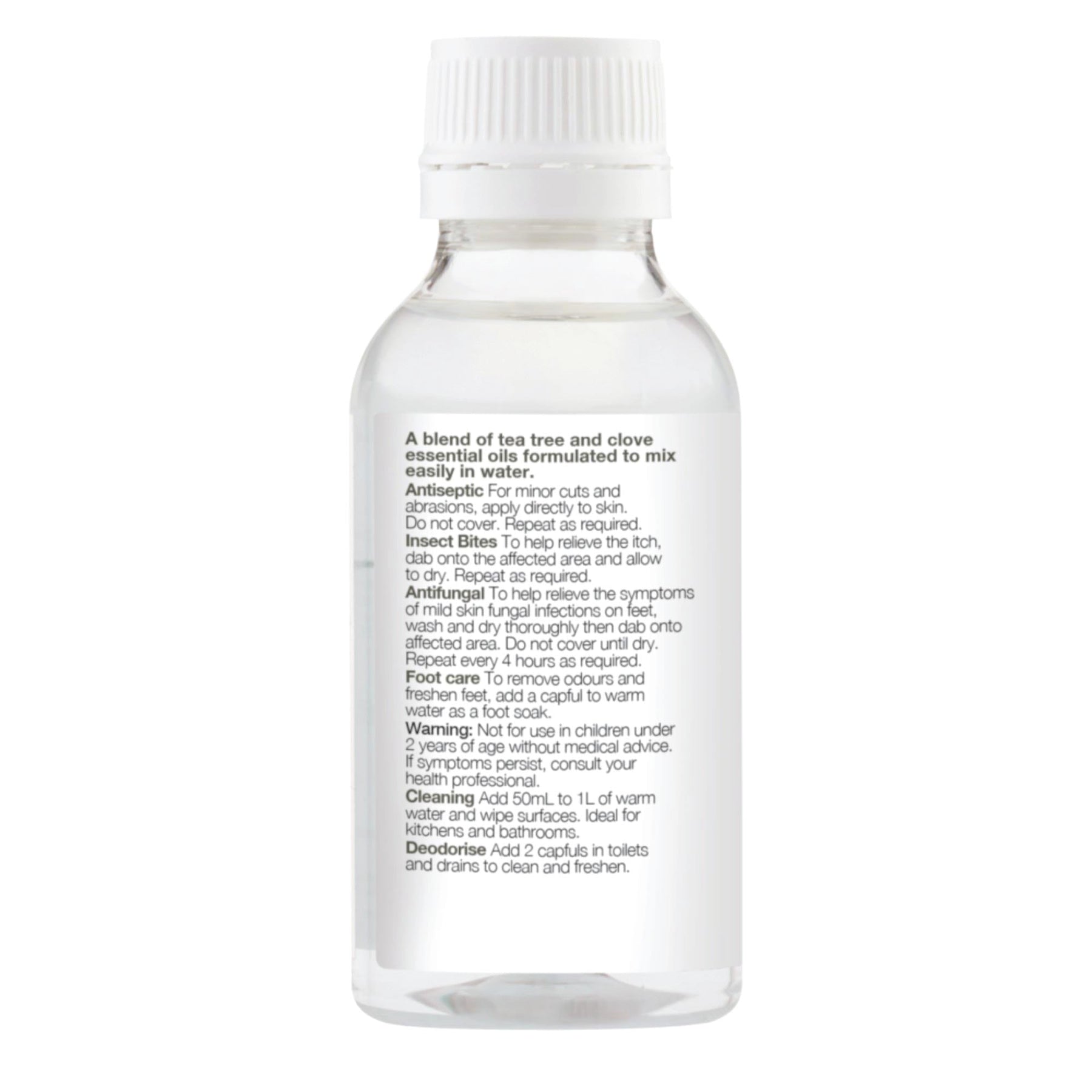 Bosisto's Antifungal Solution is a blend of Tea Tree and Clove essential oils formulated to dissolve easily in water.