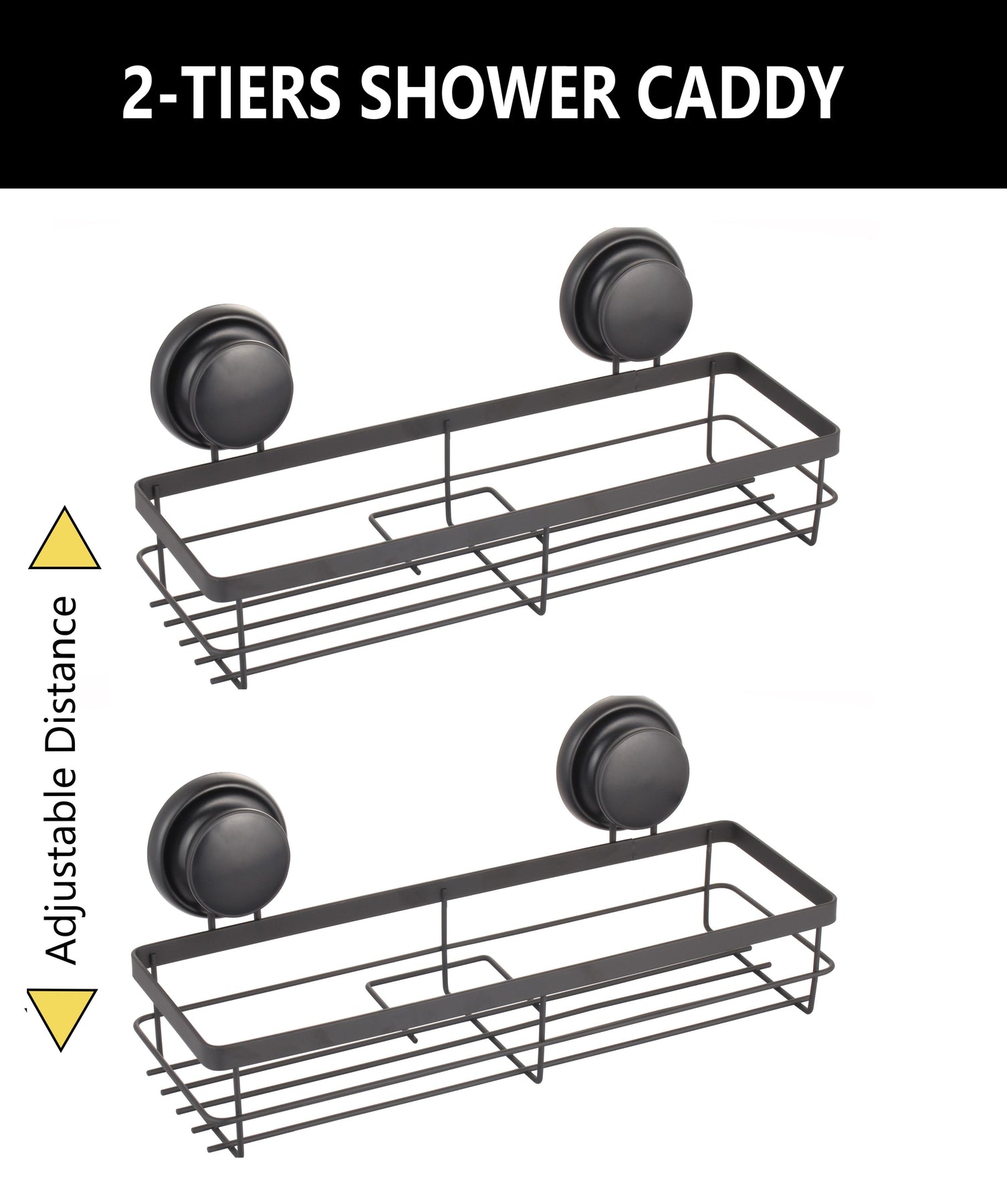 2 Pack Rectangular Corner Shower Caddy Shelf Basket Rack with Premium Vacuum Suction Cup No-Drilling for Bathroom and Kitchen