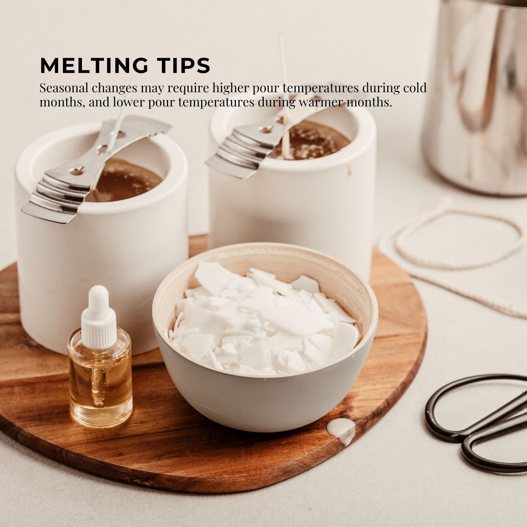 It has a lower melt point which helps with the burn and gives better glass adhesion. Suitable for container candles, tealights and clam shell melts. Not suitable for moulds.