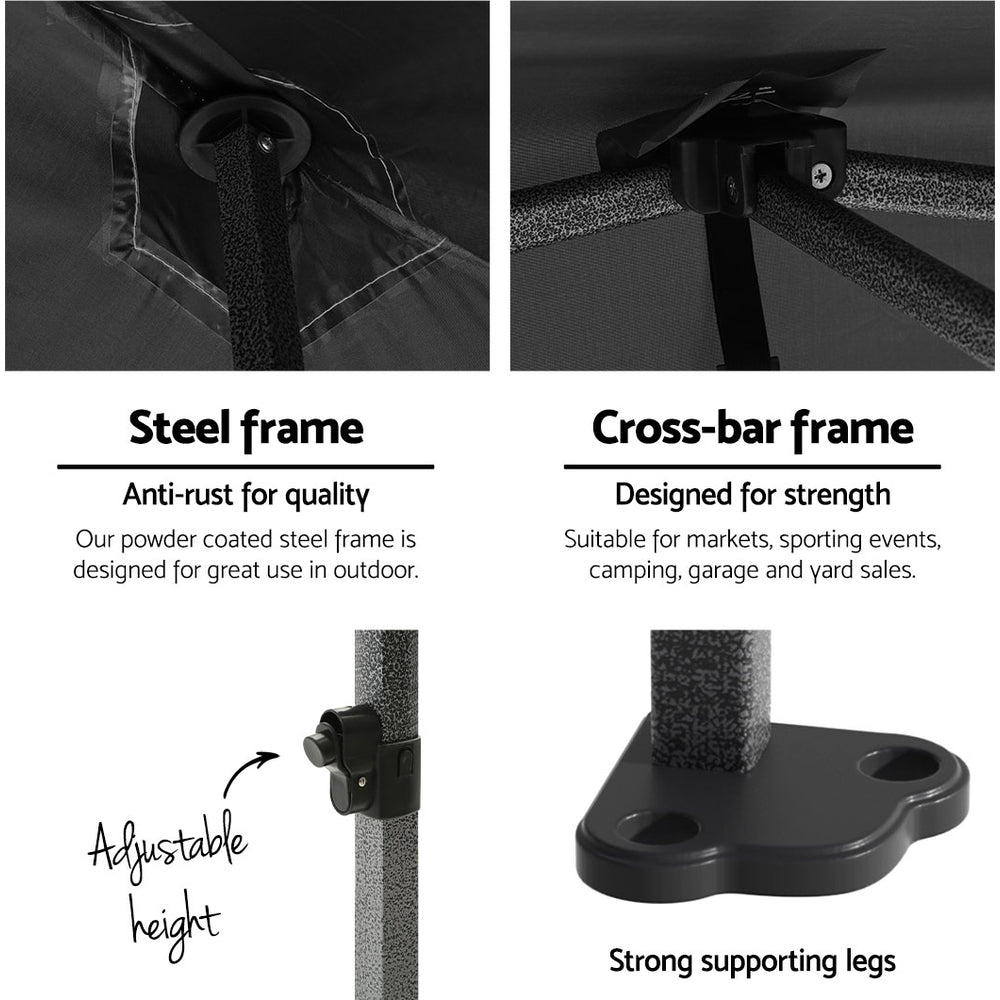 Featuring high density, long lasting PU-coating oxford fabric with effective UV and water repellent treatments, this INSTAHUT 3X3 Pop Up Gazebo provides a lovely ground and canopy coverage of 300 x 300cm. It is perfect for all your upcoming outdoor activities, as a sunshade station as well as a shelter for unexpected rains.