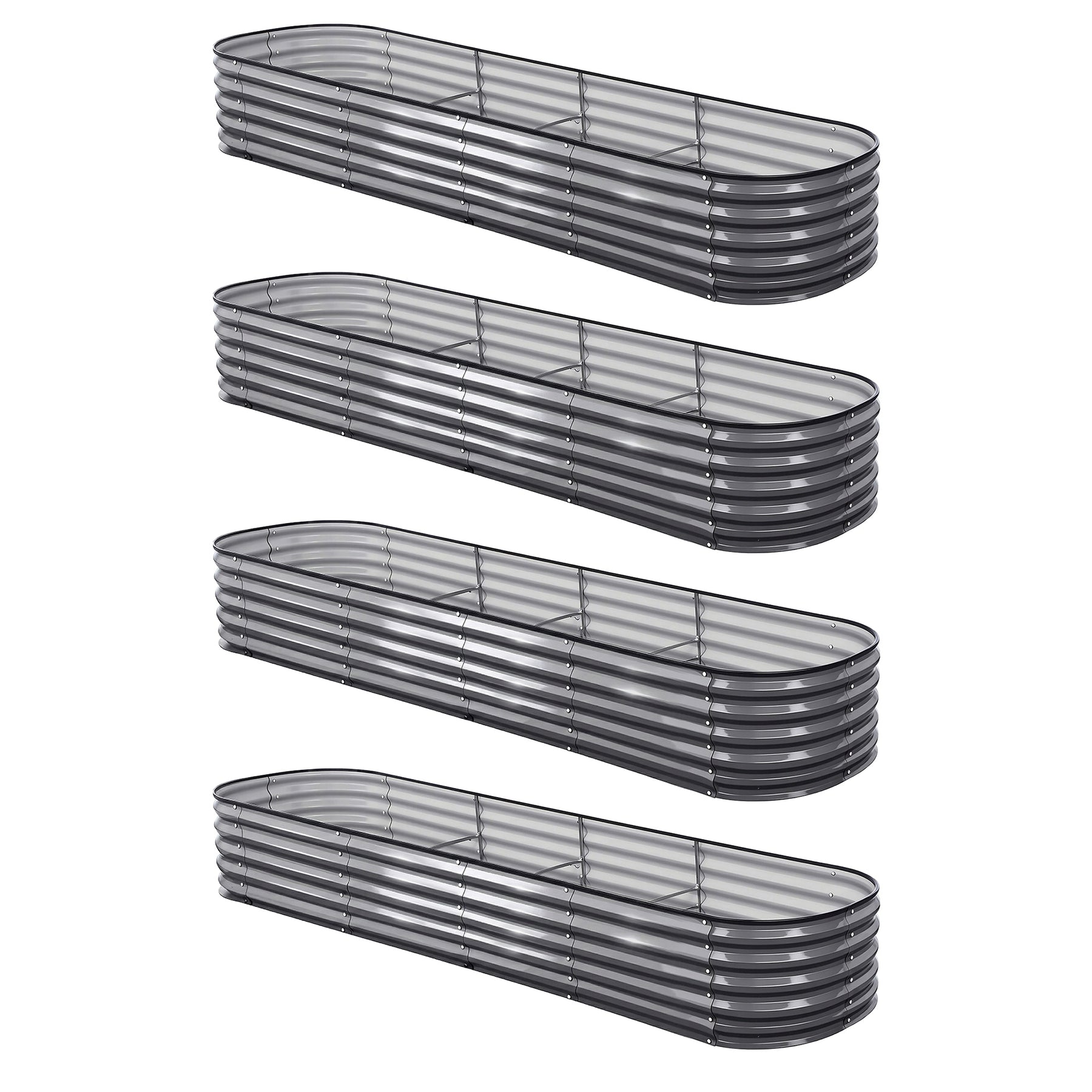 Achieve professional-grade gardening results with the Green Fingers 4-Pack Oval Galvanized Steel Raised Garden Beds. Standing at 42cm tall and stretching 320cm long, these planter boxes provide ample room for deep-rooted vegetables, vibrant flowers, and fresh kitchen herbs.