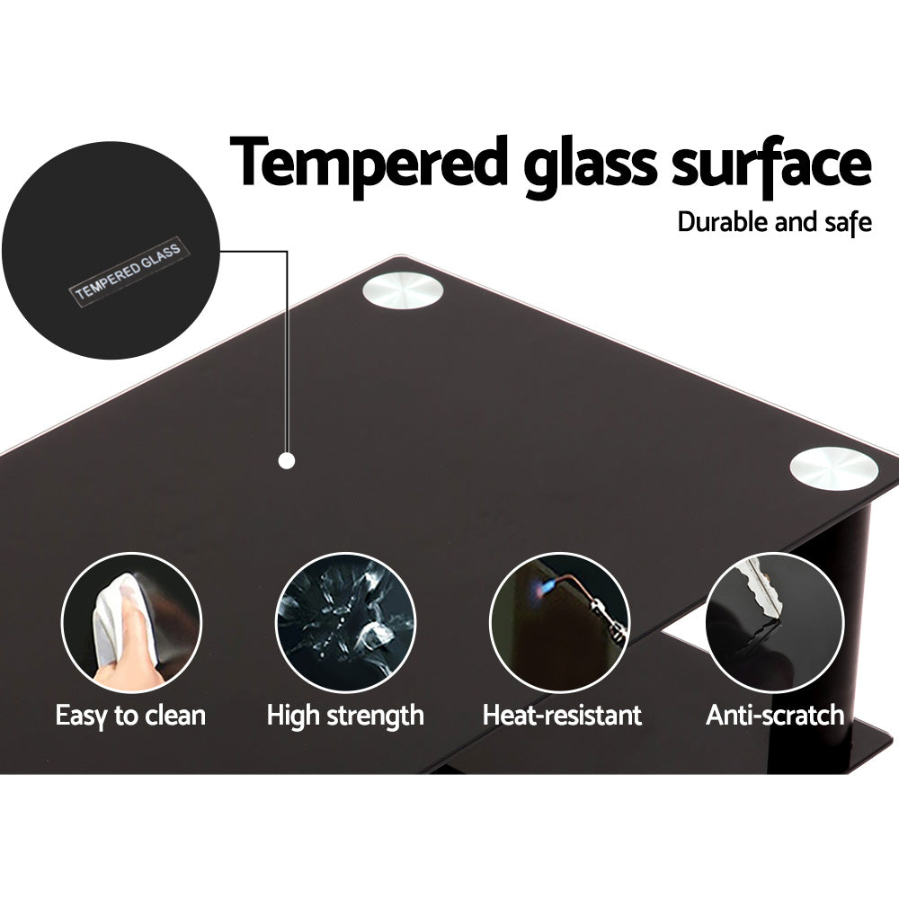 Comprising four tiers of strong tempered glass shelves, the TV and Media Stand can hold up to 20kg for each of the three bottom shelves and a maximum of 40kg for the top shelf. The integrated ensemble simply looks stunning with its sturdy aluminium construction finished in sleek black. Better still, each shelf is ventilated to enable good air flow for your equipment. And that is critical to ensure optimum performance and prolonged life span for your TV, home theatre system, DVD player, TV set box and various other entertainment paraphernalia.