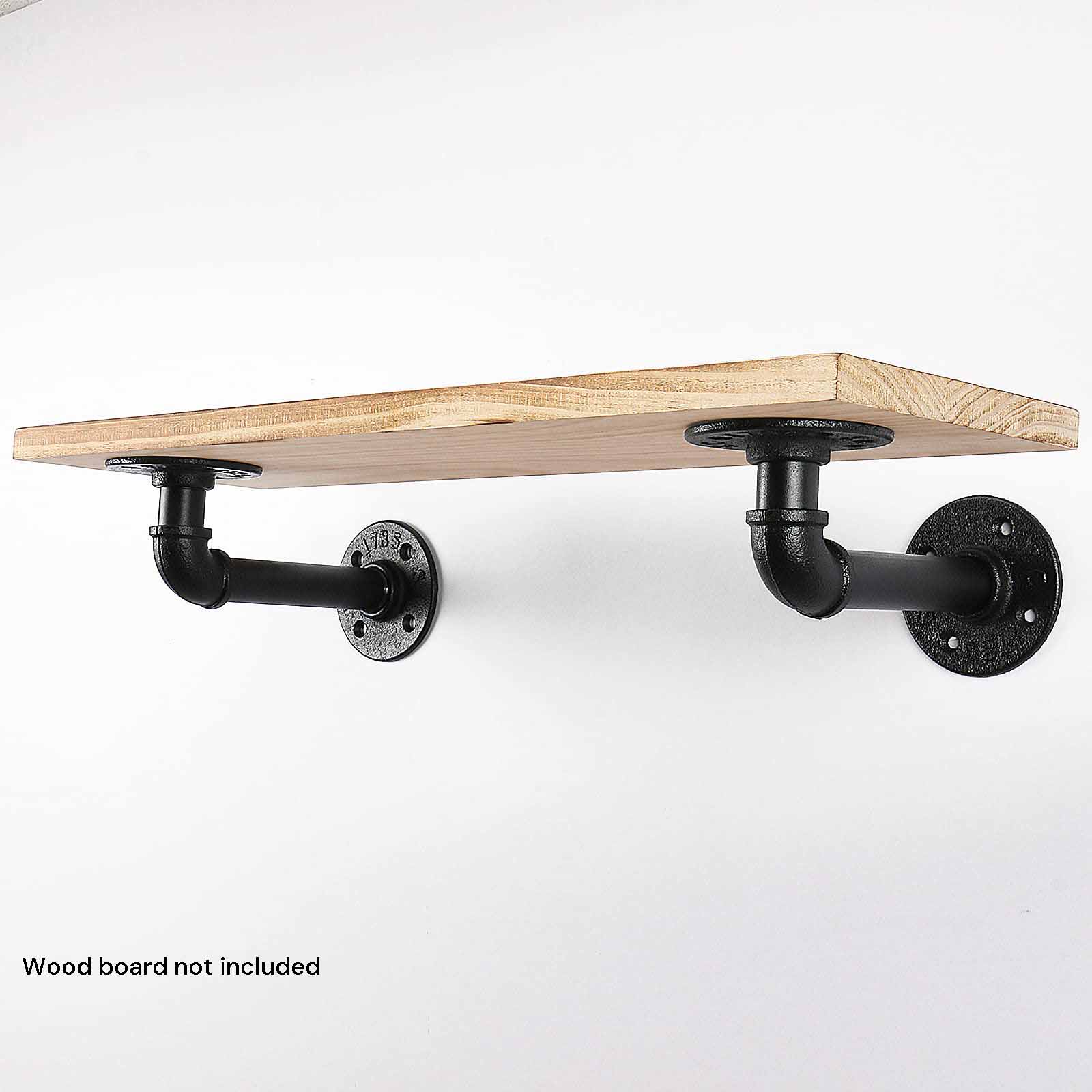 You can easily add the industrial vintage look by putting all kinds of shelves on this black coated finish pipe brackets, also can easily creating a rustic farmhouse style on your wall shelves in kitchen, garage, corner.