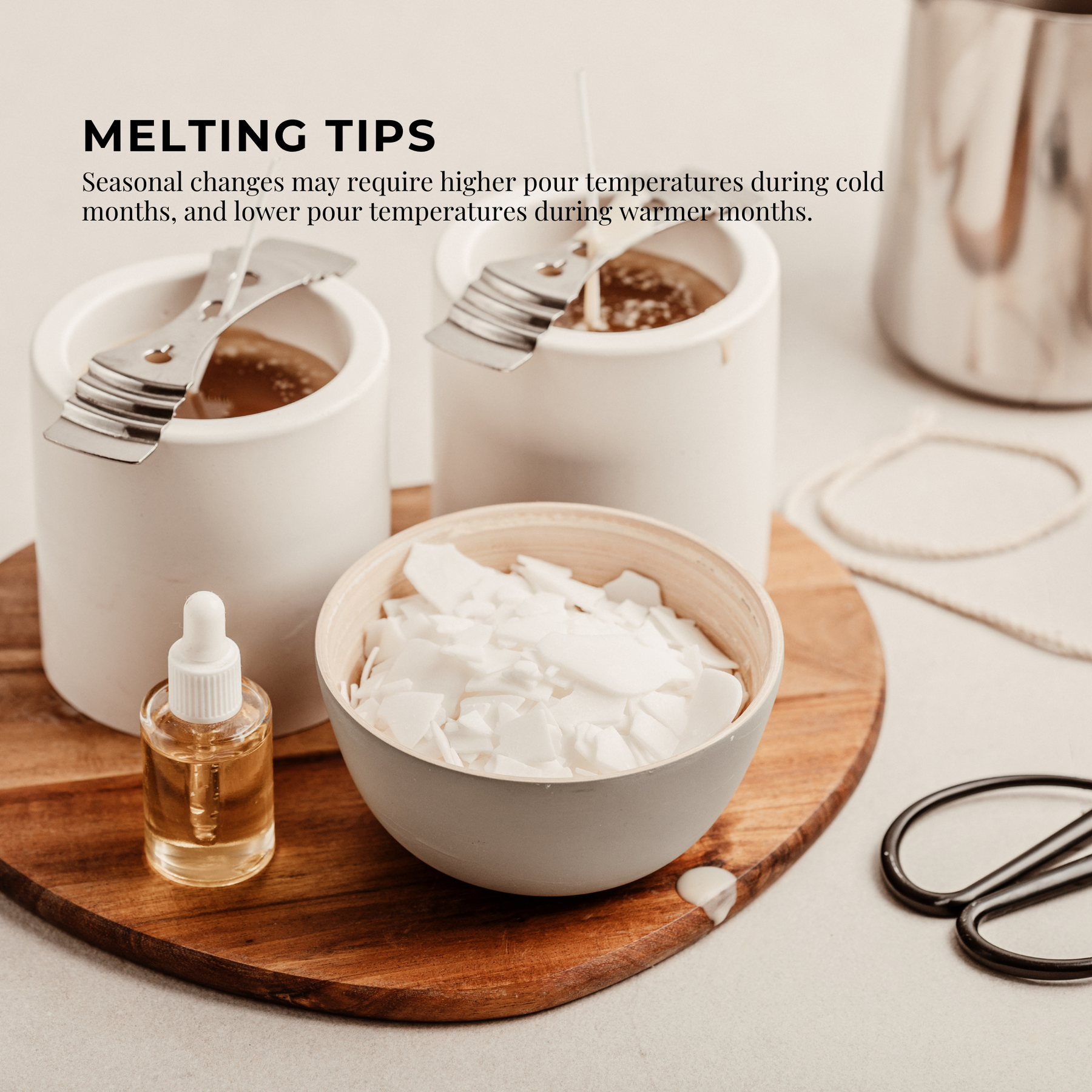It has a lower melt point which helps with the burn and gives better glass adhesion. Suitable for container candles, tealights and clam shell melts. Not suitable for moulds.