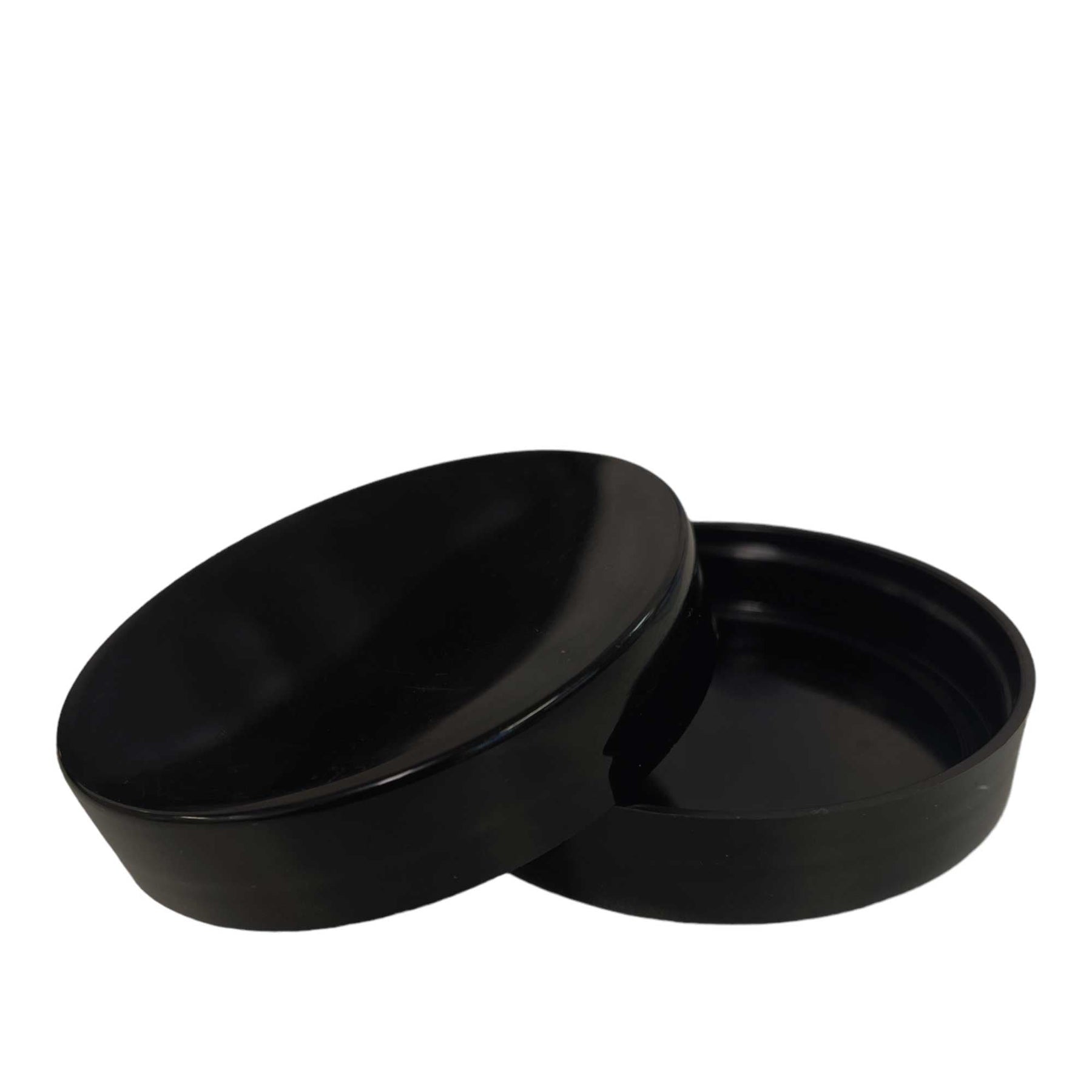This is a standard 100g white PET jar with a 70400 neck and black smooth wall cap.
