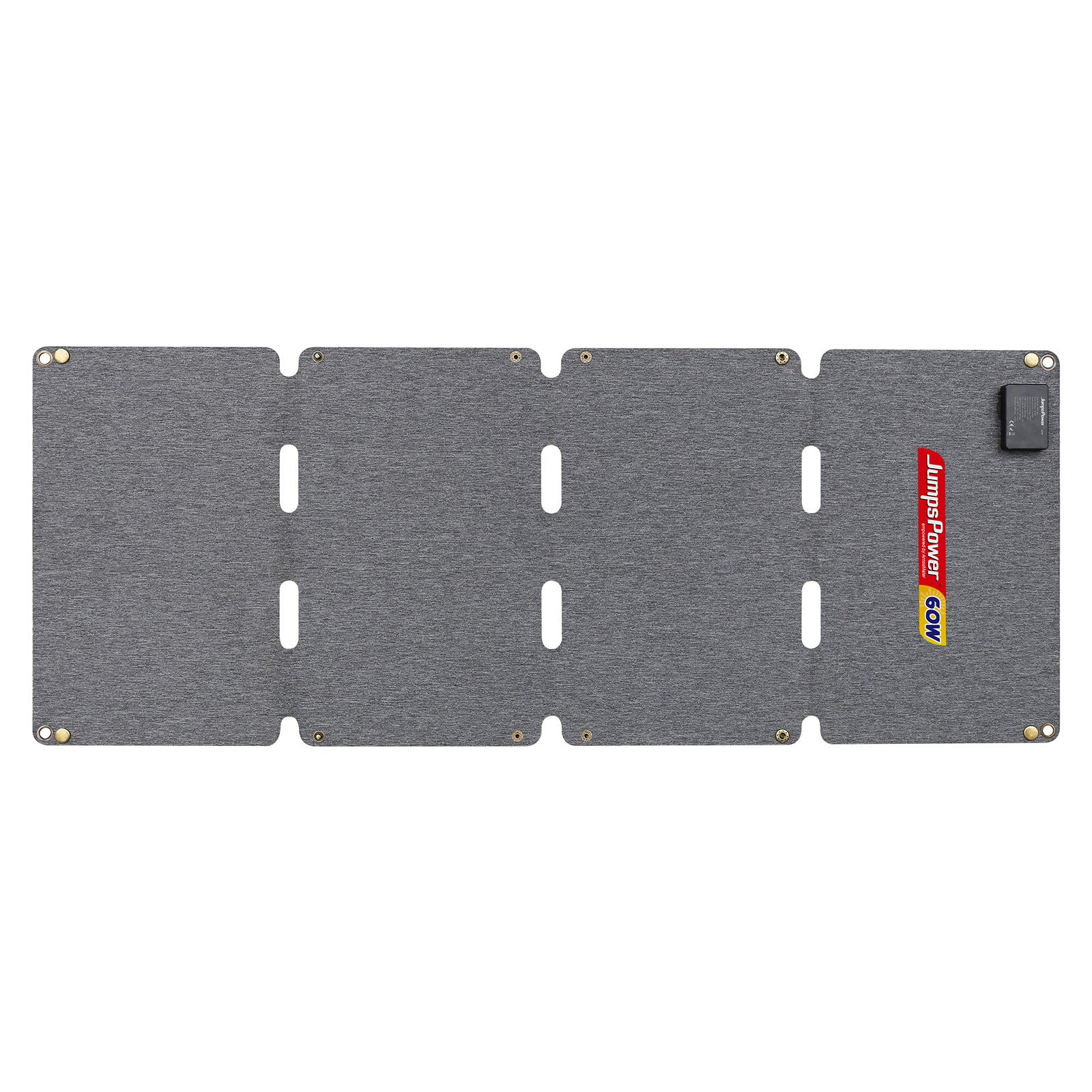 The JumpsPower 60W Portable Solar Panel is a cutting-edge solution for all your on-the-go energy needs. Utilizing high-efficiency monocrystalline silicon cells and coated with durable ETFE film, it delivers a superior performance by harnessing solar power more effectively. Designed for longevity and higher conversion efficiency, this panel is ideal for outdoor enthusiasts and professionals alike.