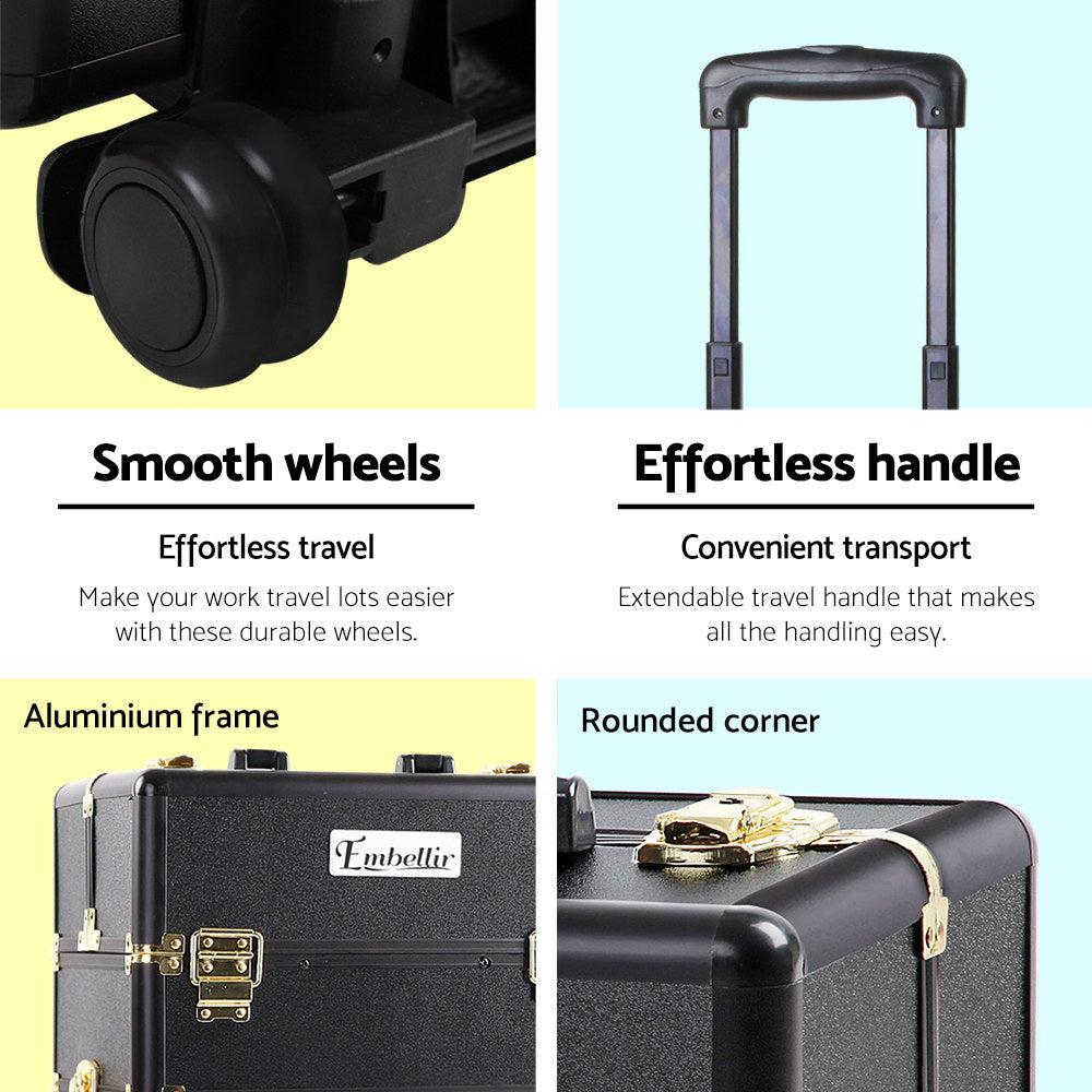 Makeup Case Beauty Trolley Cosmetic Organiser Box Travel Wheels Gold