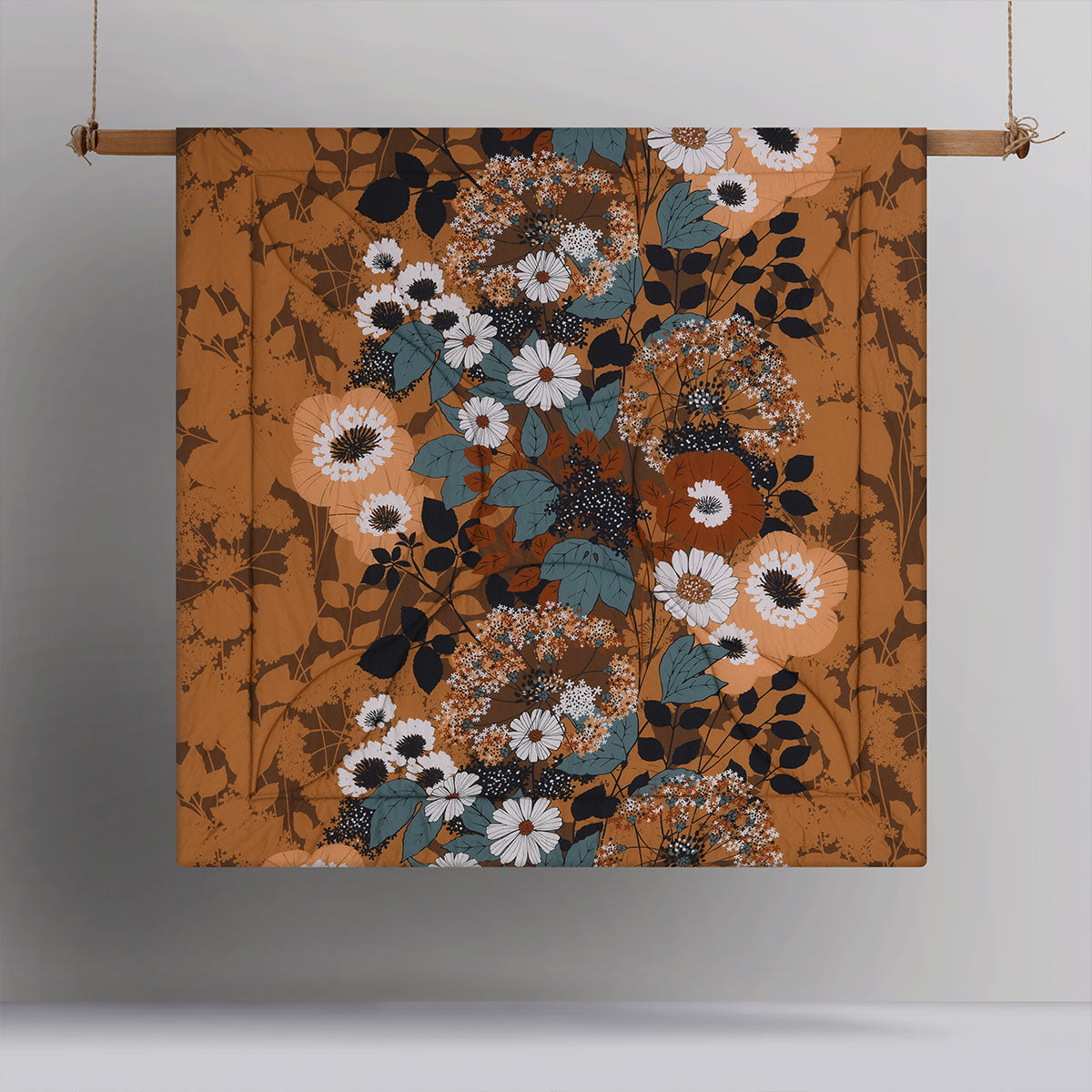 You will thank yourself a hundred times over for buying this great digital printed Markle Washed Cotton Printed 3 Piece Comforter Set by Accessorize. Refusing to compromise on design, comfort, and especially affordability, this comforter set is certain to provide you with all-year-round comfort and warmth. It features floral design printed in white, brown, black, teal, and orange colour tones. Made from soft touch and quality 100% Cotton fabric and Polyester fill.