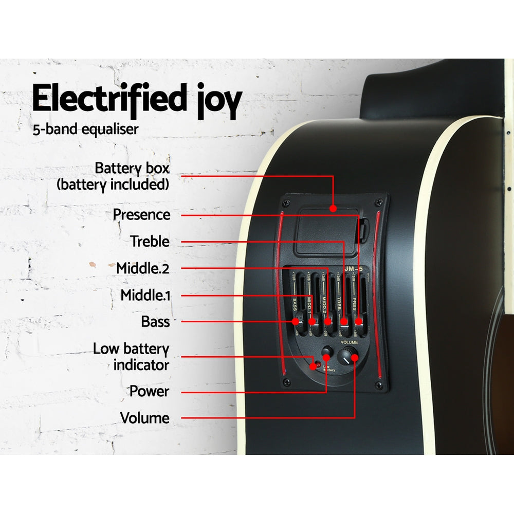 Sitting on a couch at home playing guitar and singing with your mates or sitting around the campfire and singing in harmony is definitely enjoyable and fun; and this Professional 5-Band EQ 41" Electric Acoustic Guitar is the perfect guitar for you. This electric acoustic guitar is suitable for guitar performers at all levels.