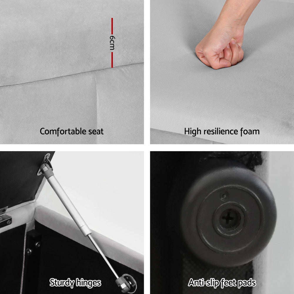 Add a luxury touch to your living room with an Artiss Velvet Storage Ottoman. It has an ultra-soft, high-resilience foam seat upholstered in quality pink velvet, set atop a sturdy wood frame with a 300kg weight capacity and robust hinges. Lift the seat to reveal a generous storage space for up to 60kg worth of blankets, pillows, toys and more. The bench is supported by four anti-slip feet pads to prevent slipping, tripping, scratches and dents. With an Artiss Velvet Storage Ottoman you can easily bring warmth, space and timeless style to any home.