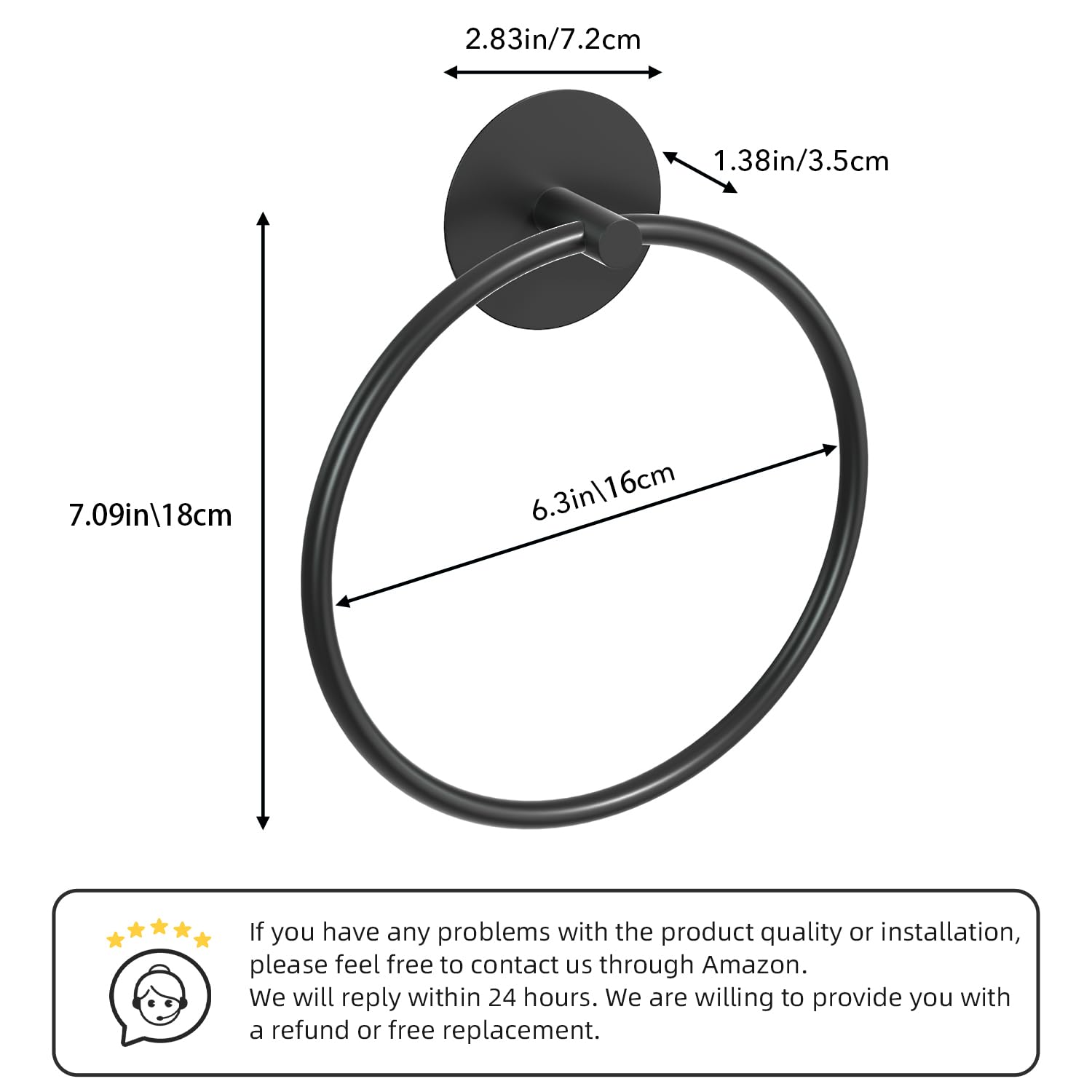 With an attractive matte black appearance and round design, the towel holder is suitable for various decoration styles. Smooth edges of the hand towel holder protect your body from scratching and are safe for kids to use,closing design can stop items falling.