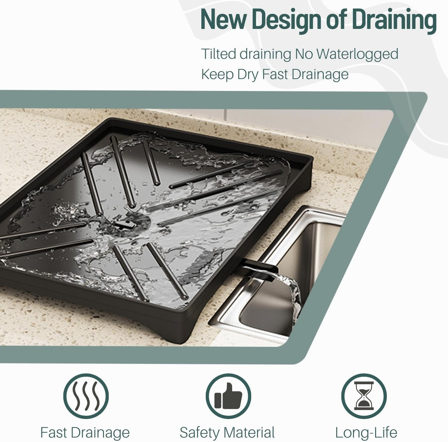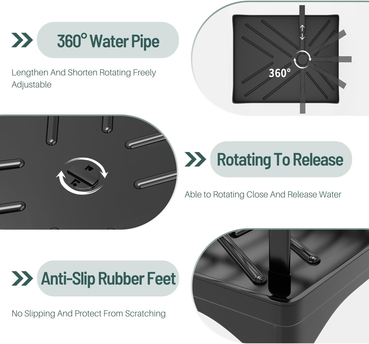 CARLA HOME 2-Tier Large Dish Drying Rack with Drainboard, Utensil Holder, Glass Hooks & Cutlery Storage (Black)