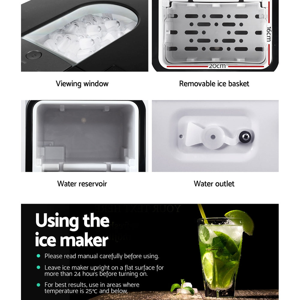 Need ice cubes on demand fast and without the hassle of driving to the nearest servo or supermarket to get some? Well your wish has just come true with our Ice Maker. It can make 9 bullet-shaped ice every 8 minutes depending on the water and ambient temperatures. That works out to be up to 12kg on demand over a 24-hour period. Just fill up with water and turn on using the easy-to-use LED digital control panel to begin the ice-making process. You can easily monitor the ice-making process through the viewing window and there is an automatic indication when the ice container is full, or water level is low. Other great features include a large heat dissipation fan for excellent cooling, convenient water drainage plug and non-slip feet for a stable operation. Not least, the ensemble works ever-so-quietly and complies with current Australian standards. Perfect for commercial use at cafes and restaurants, and home use too for parties or even an emergency ice massage.