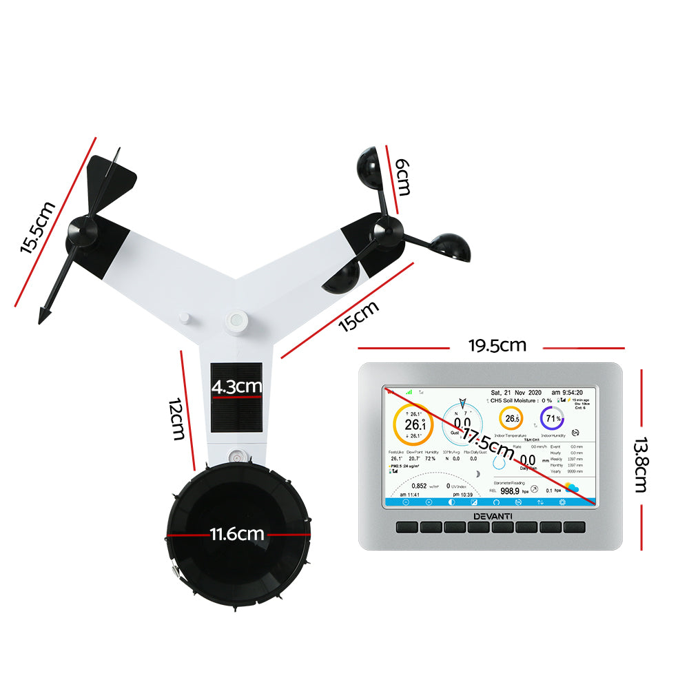 Weather Station Indoor Outdoor Wireless WiFi Rain Gauge Anemometer Solar