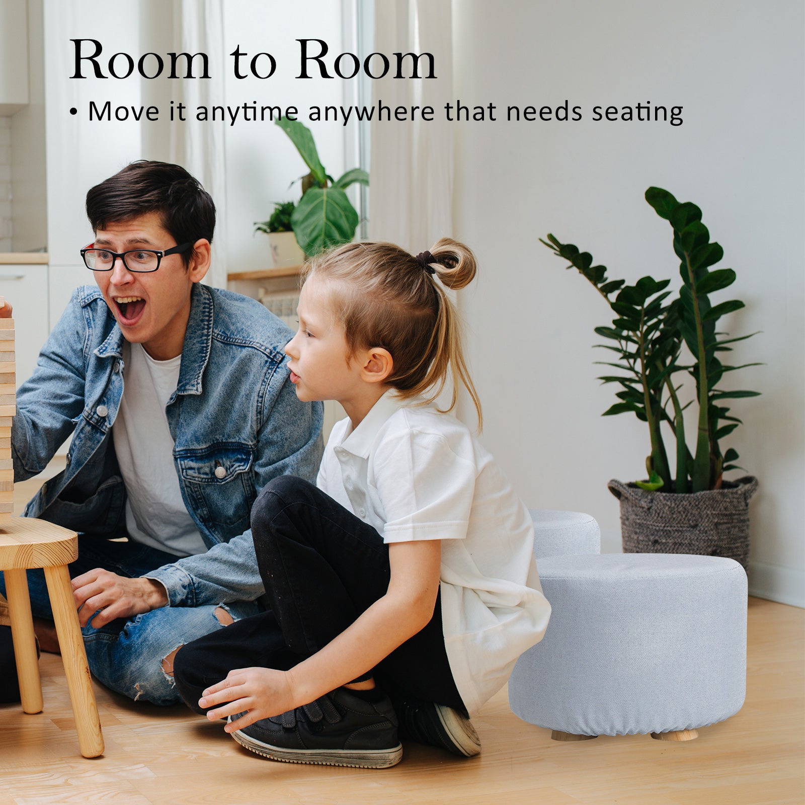 La Bella Ottoman Round Stool Fabric Wooden Leg Foot - Light Blue
