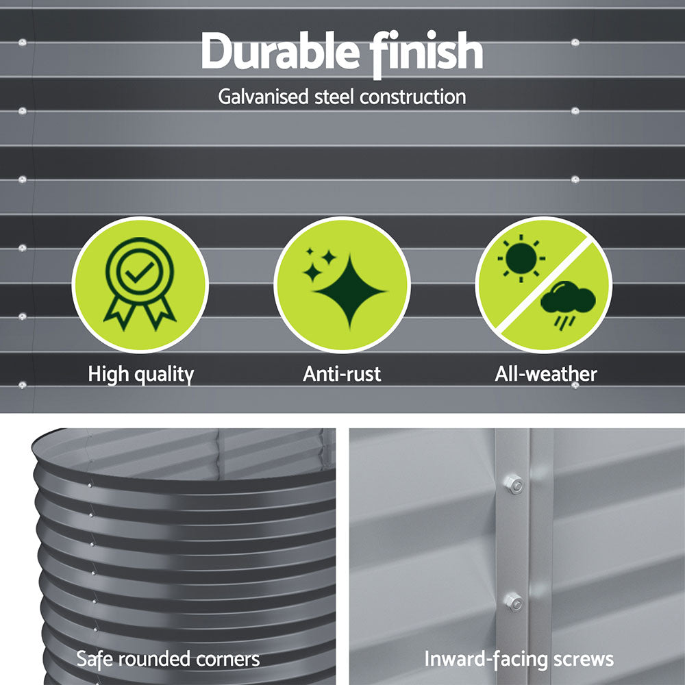 Plan to grow your own greens? Carrots, radishes, lettuce, spinach, onions, tomatoes or strawberries, our Gavlanised Raised Garden Bed can help to grow them all easily. Made of quality SGCC steel with epoxy powder coating, our galvanised raised garden bed has a low reaction against chemicals used for planting and is totally rustproof. Its 0.5mm thickness means extra stability and edges ensure that it is safe to use too. The garden bed is easy to put together and durable in every weather condition. Set it up, add in the soil, then the seeds or saplings and you are good to have a great fruit and vegetable patch of your own. Better still, get a few sets and you'll be a happy home farmer with a rich harvest in no time. Get yours today.
