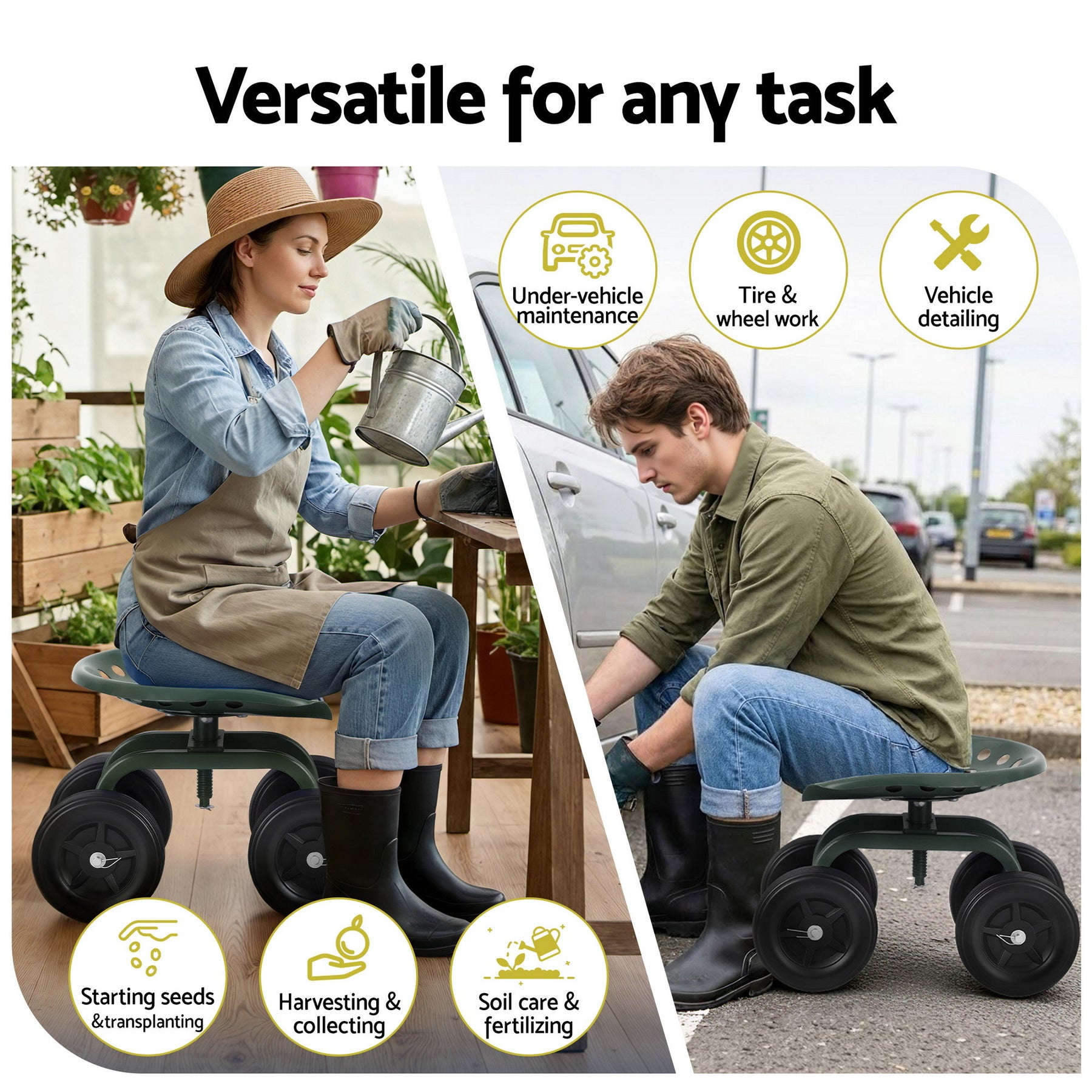 Does gardening leave you with aching knees and a sore back? It's time to upgrade your workflow. The GARDEON Adjustable Rolling Garden Cart is specifically engineered to take the strain out of your passion, allowing you to focus on what you love.