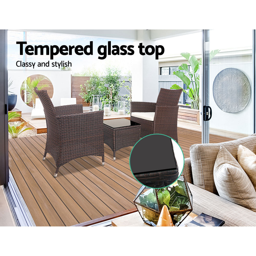 3pc Bistro Wicker Outdoor Furniture Set Brown