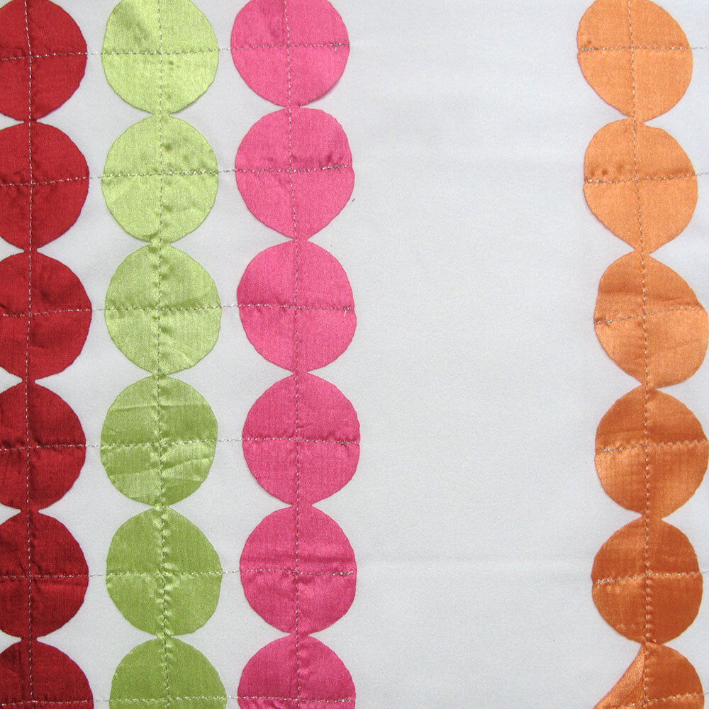 Confetti will brighten your life and your room. Multi coloured circles are stitched onto a bright white base to create a stunning contemporary look. The set comes in white, red, pink, orange, and green colour tones. Made from Polyester fabric with easy care properties.