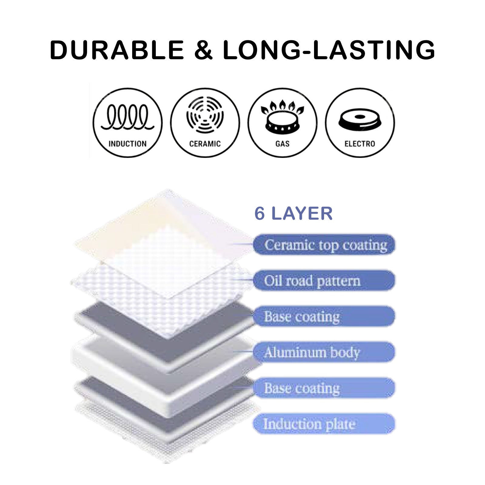 Cleaning up is a breeze, thanks to the non-stick ceramic coating and the clever oil-road design, which simplifies the process and promotes healthier cooking.