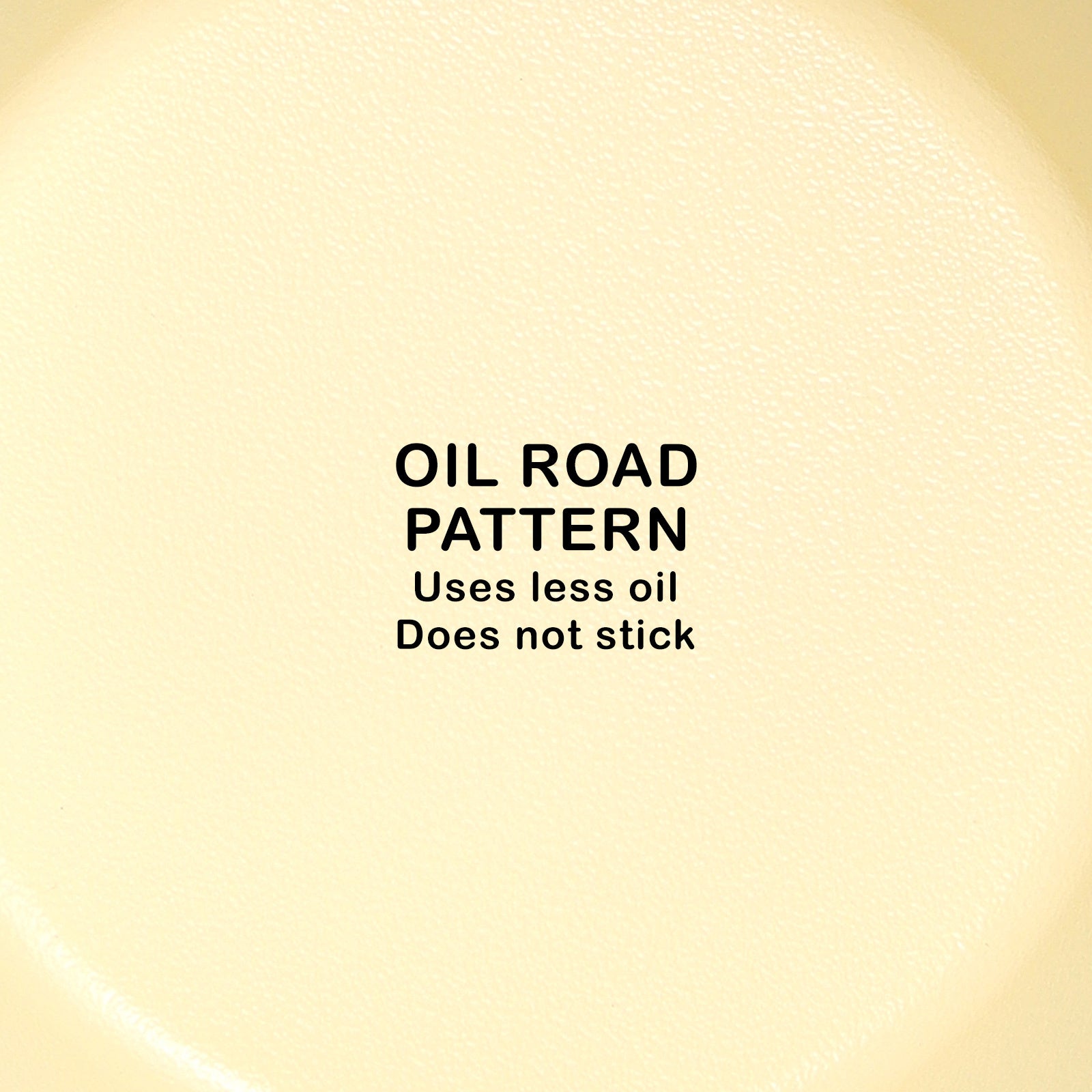 Giorno Felice IH 28cm non-stick Wok Pan harnesses Korean technology, featuring an innovative oil-road pattern layer that ensures even oil distribution, reducing the need for excess. Moreover, it adds a vibrant splash of trendy color to your kitchen.