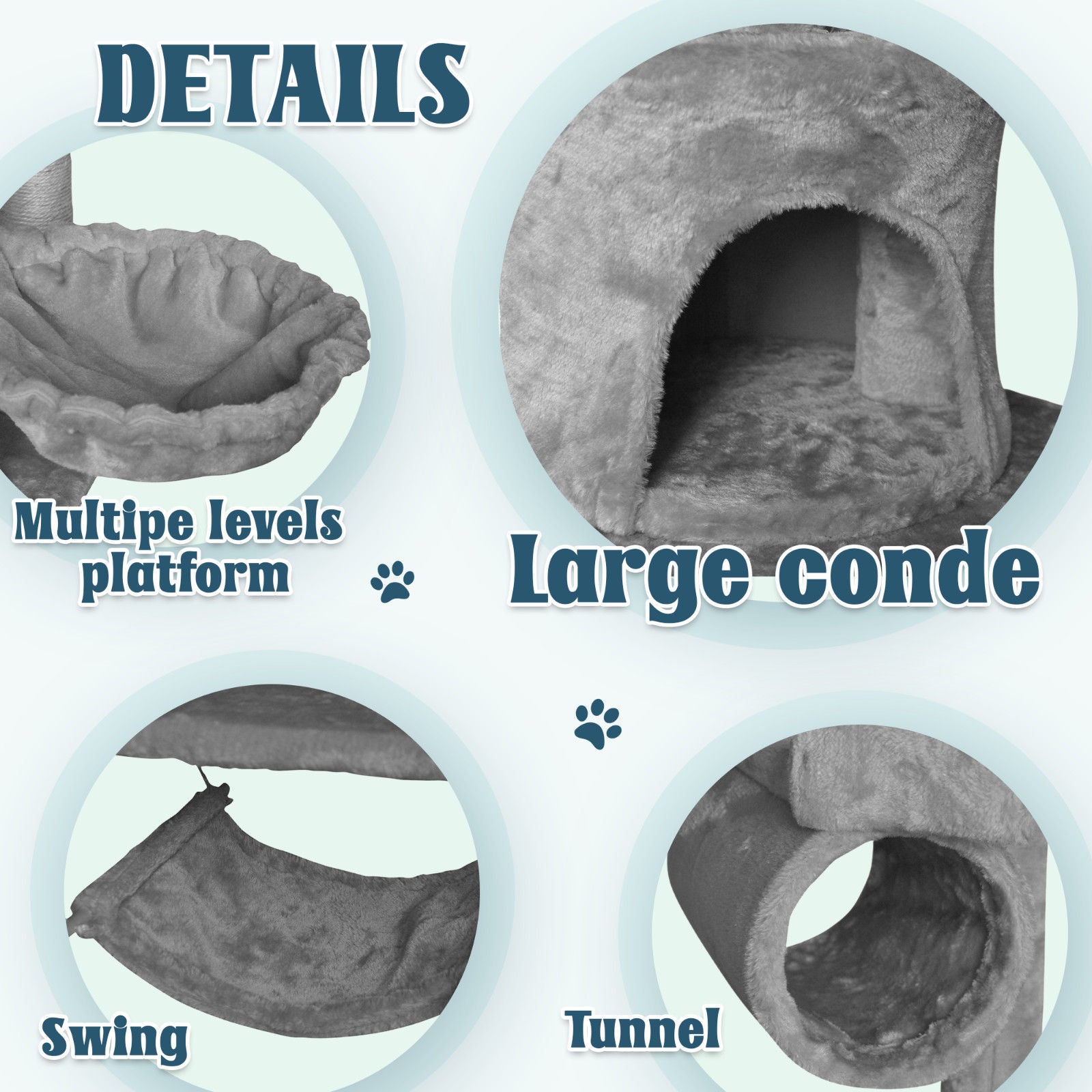 Grey Cat Tree Tower Condo Scratching Post Bed Stand 1.4M