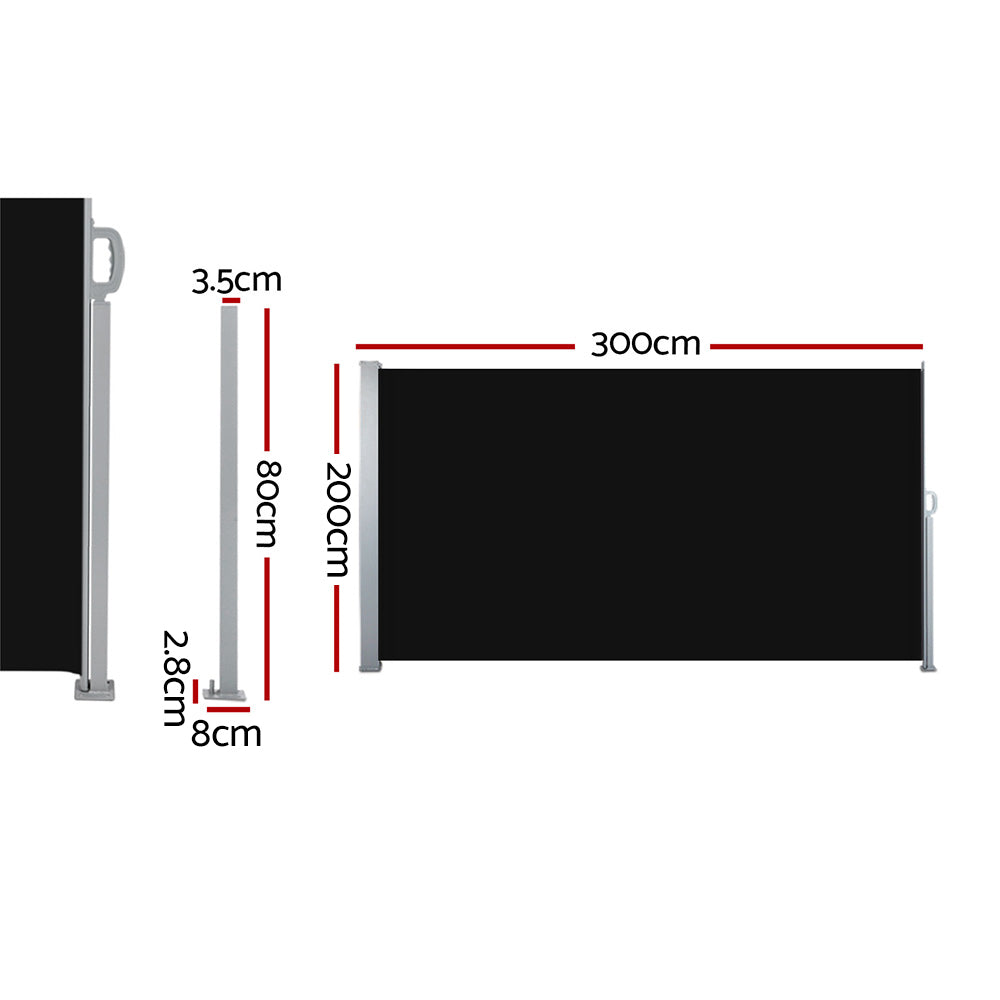 Made from UV resistant and tear resistant polyester with robust steel frame, this quality 200 x 300cm retractable side awning is perfect for outdoor application. Excellent at blocking prevailing wind and low-lying sun, as well as providing additional privacy. Simple installation and easy operation.