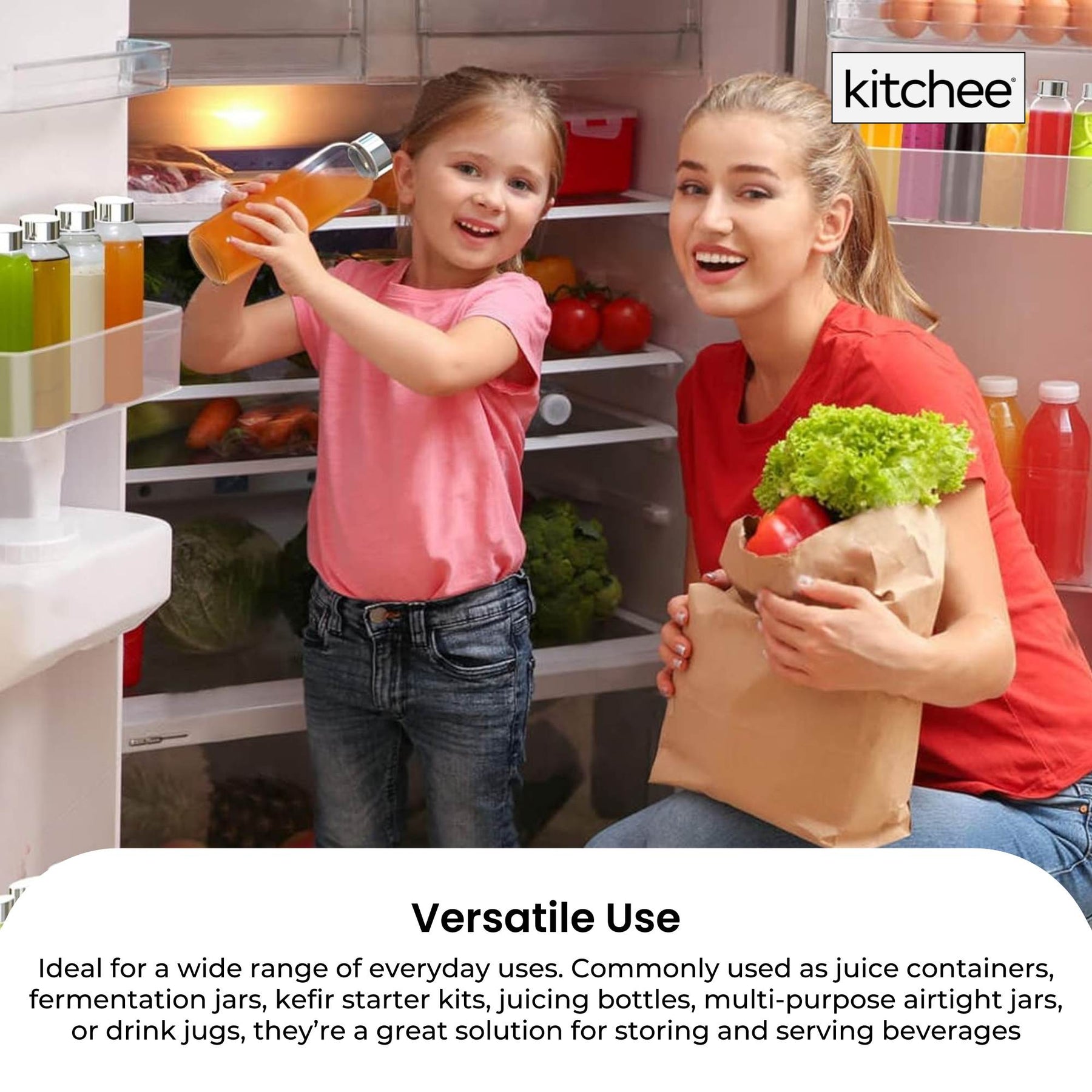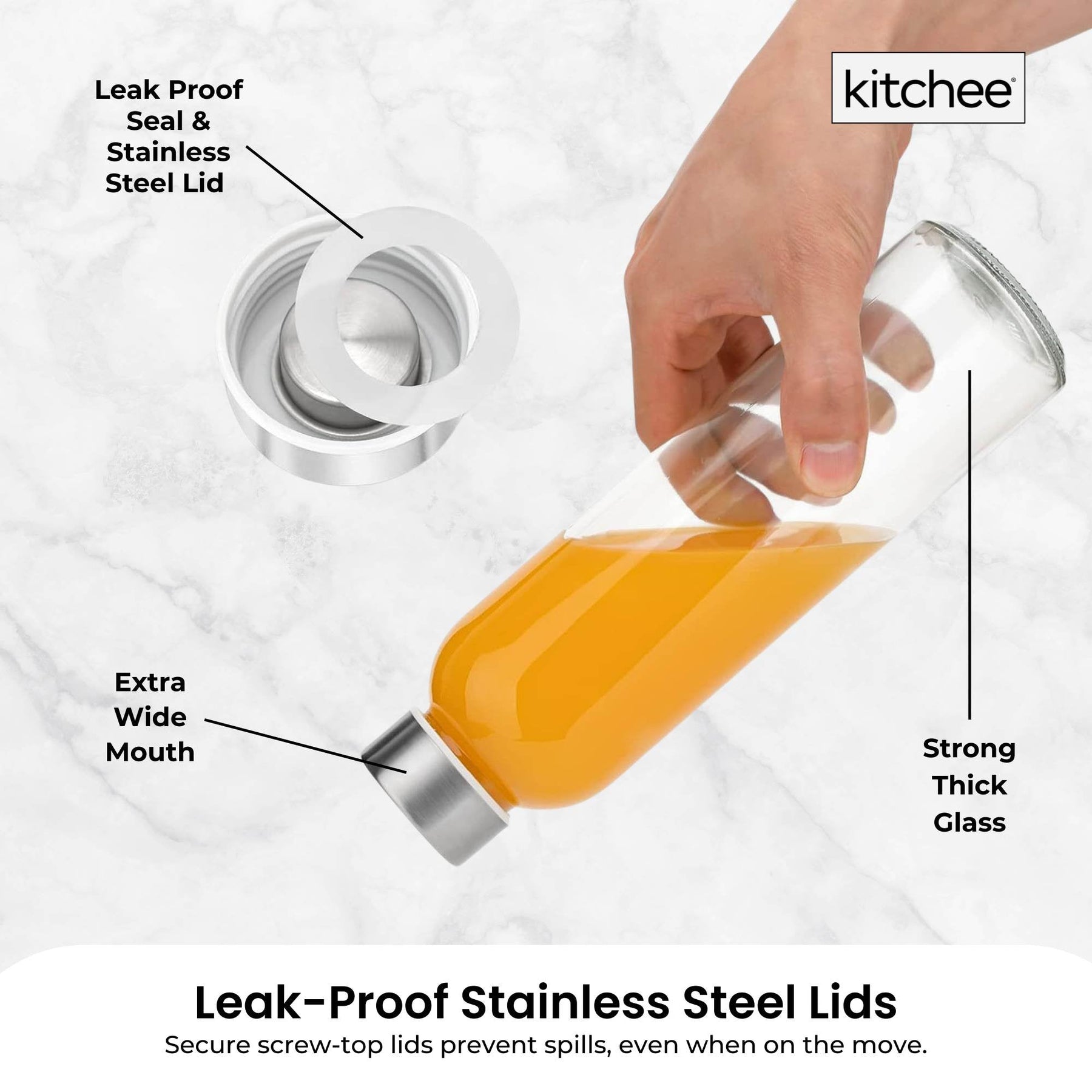 Stay refreshed and organised with this set of 6 high-quality 500ml glass bottles, each fitted with a secure stainless steel lid. Perfect for everyday use at home, in the office, or on the go. Whether you're storing juices, water, smoothies, or infused drinks, these bottles are built for convenience and durability.