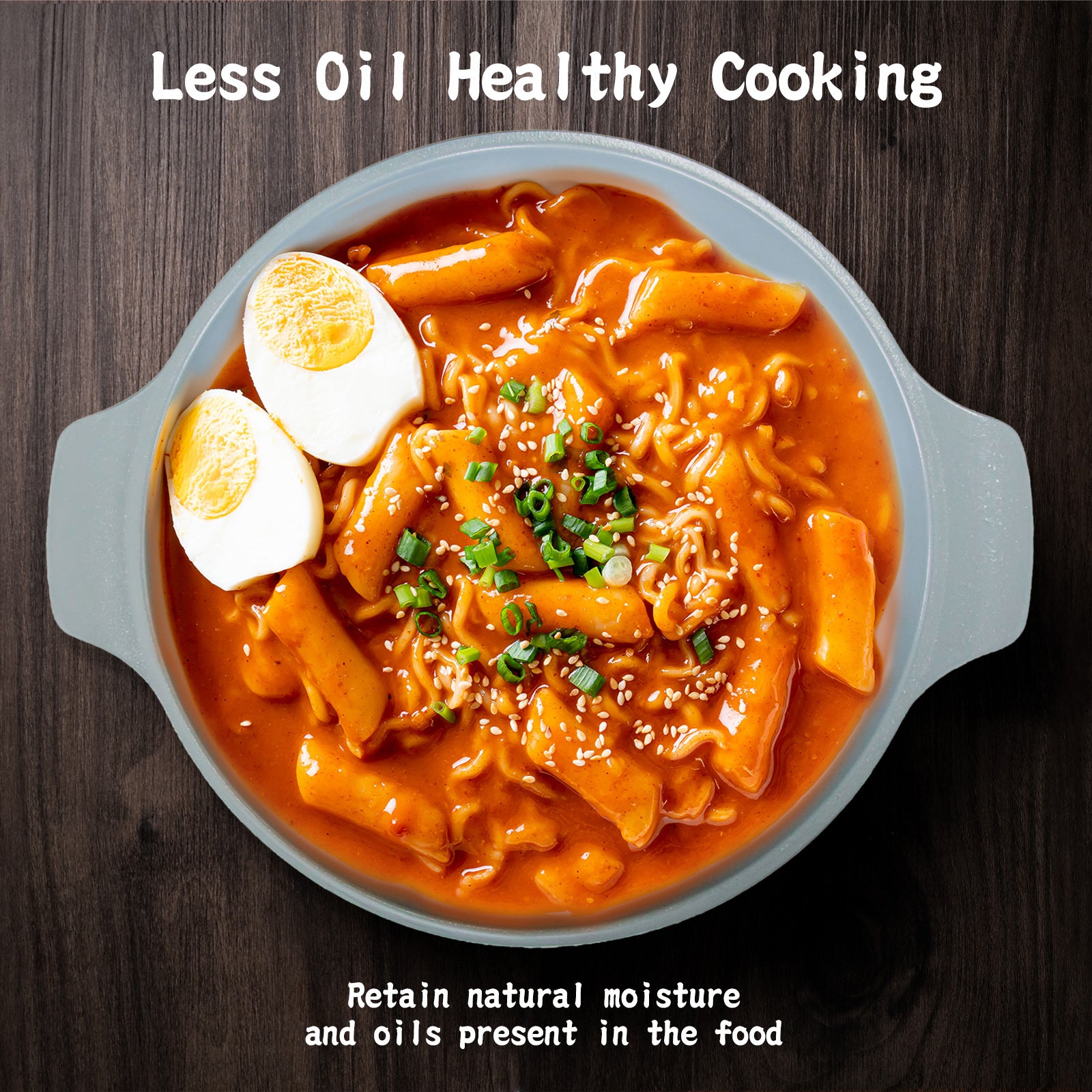 Internal and external 6 layers coating - Reinforced with a strong and robust titanium coating for heavy non-stick black coating, reducing the frictional force of the coating surface for excellent coating and cleaning power. The release of the raw infrared radiation gives the deep flavor of the dish.