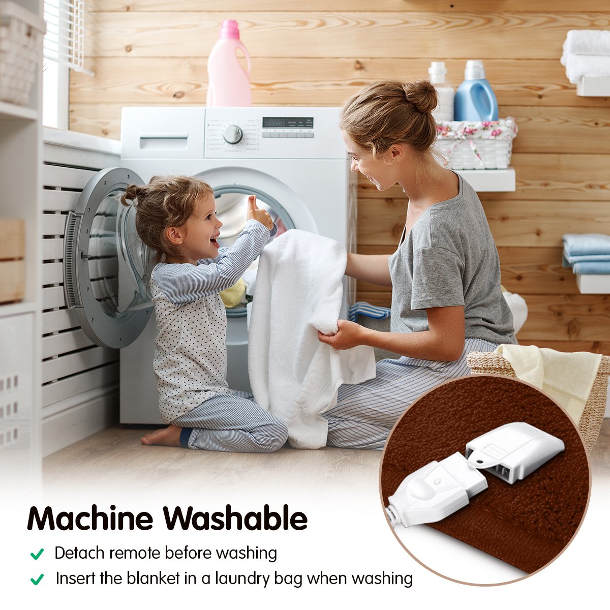 Heated Electric Blanket Throw Rug Coral Warm Fleece Brown