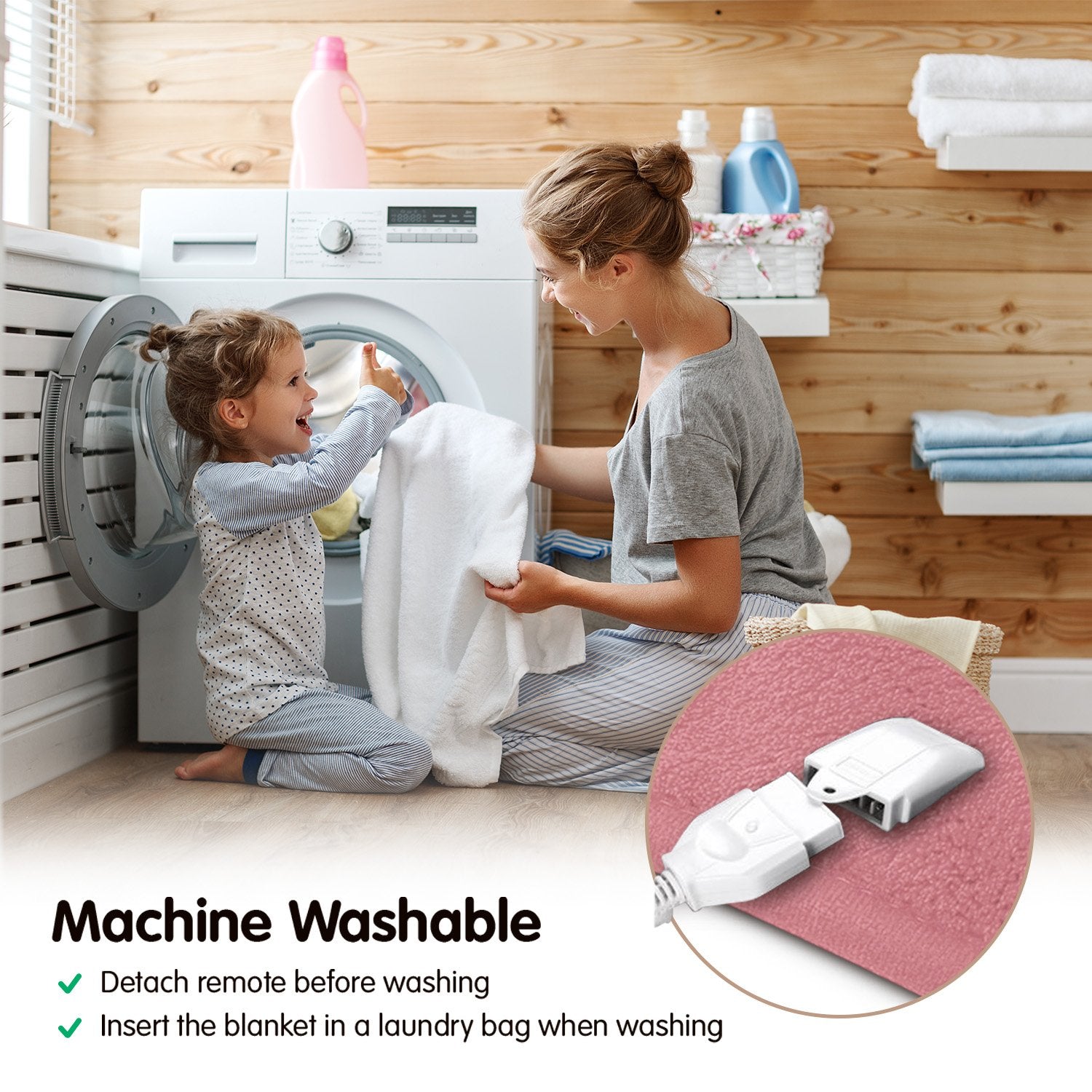 Heated Electric Blanket Throw Rug Coral Warm Fleece Pink