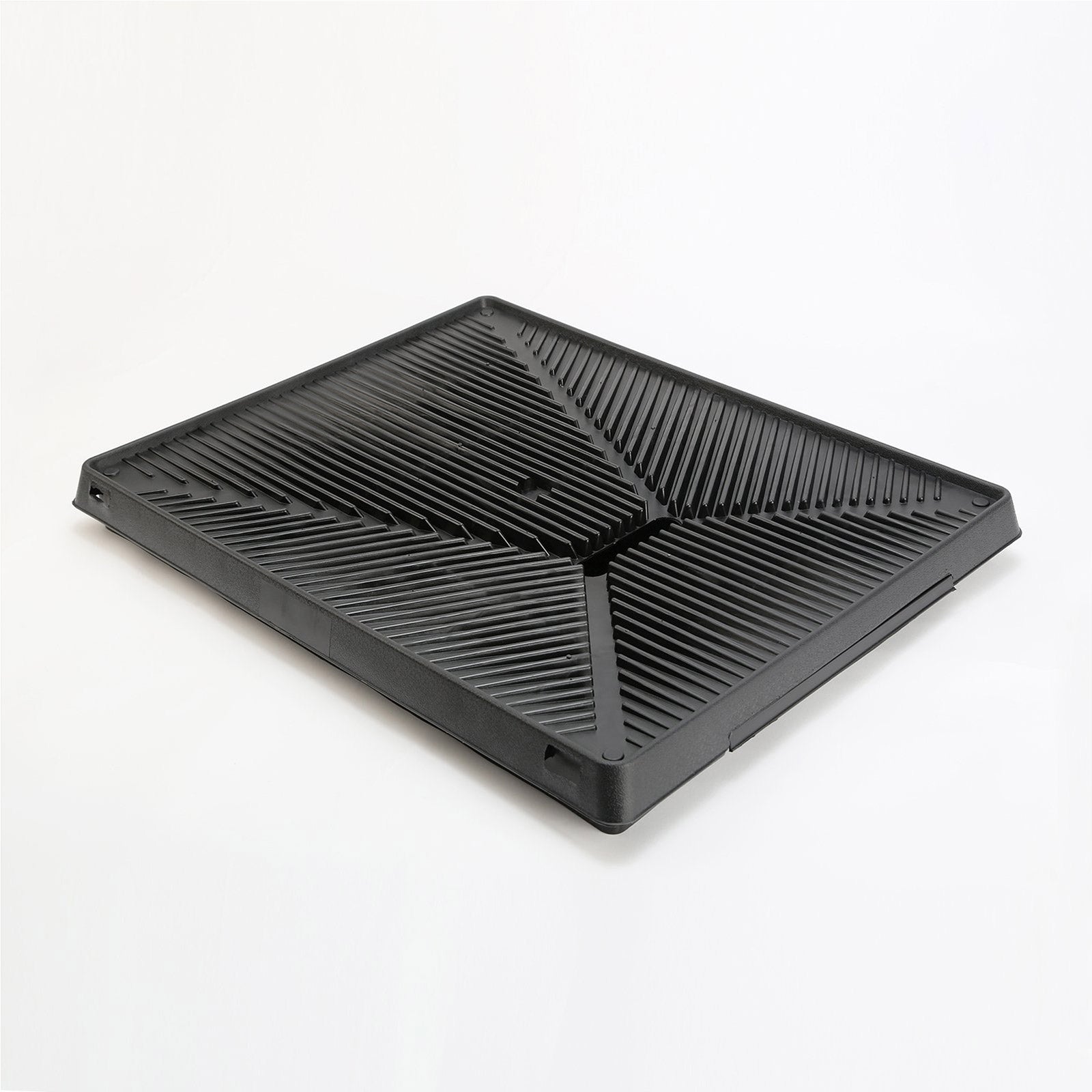The tray is consisted of 3 separate layers: synthetic grass layer on top, smart urine drain designed to drain your dog's waste to the removable urine catch tray at the bottom side. The side tray is convenient to quickly dispose urine as you do not need to remove the whole tray to empty the tray. These 3 separated layers provide the best results as it prevents the grass on top to be soaked so that your pet does not step on a wet grass when he/she needs to use the toilet again.