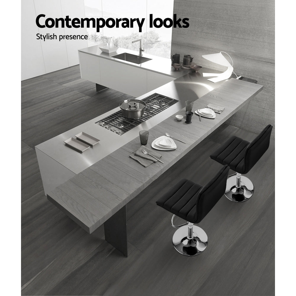 With the classic design and contemporary good looks, these bar stools are a must for anyone who wants to update their living or dining space. Upholstered in faux leather, they also feature an extra thick foam padded seat for ultimate comfort. The semi-circular footrest ensures relaxed sitting while the omni-directional seat makes for easy turn to any facing, and the height can be easily adjusted with the SGS-tested gas lift lever. Lastly, a floor protector under the base helps to keep your pristine floor scratch-free at all times.