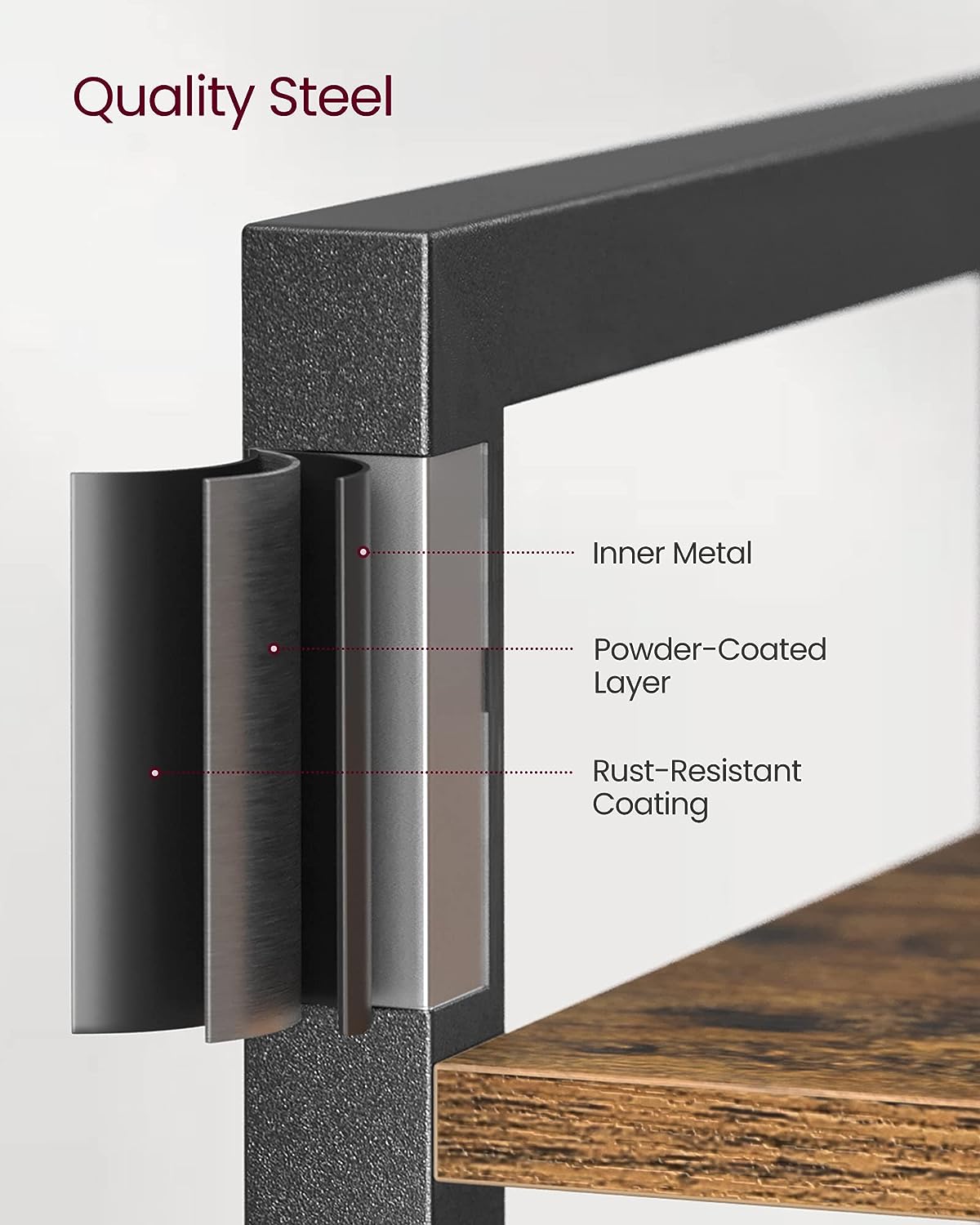 Small 6-Tier Industrial Bookshelf, Rustic Brown, Black