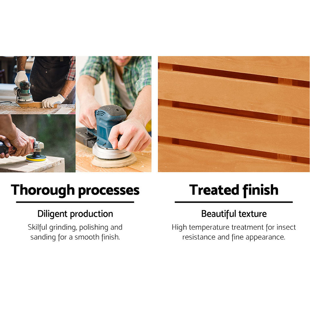 Get this stylish and functional storage bench for your patio, backyard or front porch! Matching with the natural colour, it is seamingly suitable to place it where you can enjoy some shade and warmness at the same time. Plus some great storage space where you can store cushions and pillows when they're not used. How convenient. Made with high quality hardware, it is assured with great quality and a long lasting furniture that you'll own.