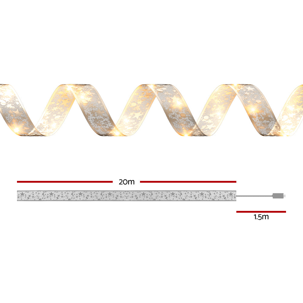 20M Christmas Lights Ribbon Fairy Light 200 LED Warm